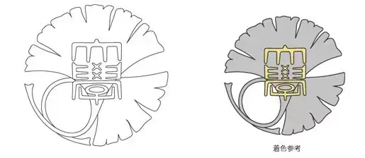 东京大学的校徽是2004年在旧校徽的基础上修改而成的,主体依旧沿用的之前两片银杏叶的形态,细节上存在略微的不同。较大的差别在于颜色的应用,一片叶子用了银杏黄,另一片则用了淡蓝色。