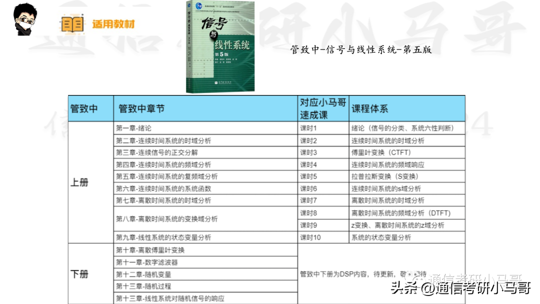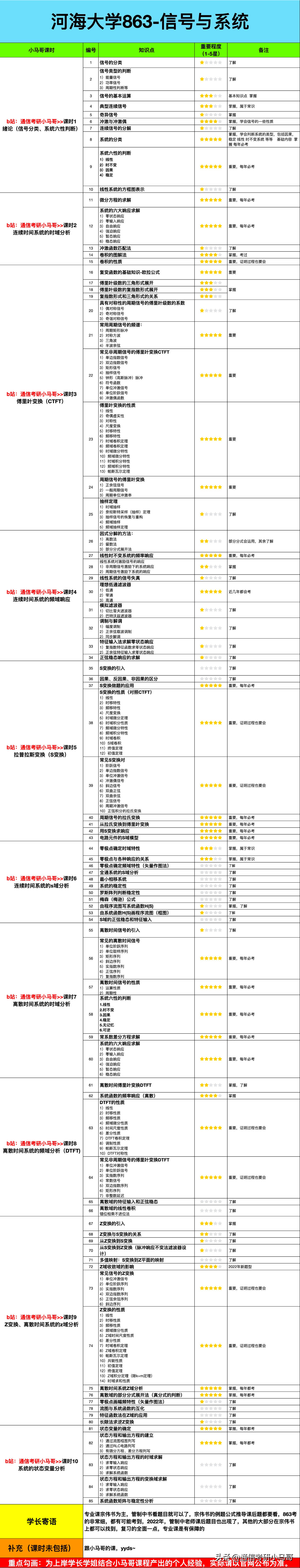 小马哥联合22级河海大学863考研专业课高分学长免费为大家做了知识点重点勾画以及小马哥课时对照. 信号与系统考研配套16h课程(持续更新中...),小马哥分成了84个考研知识点,还有15h习题课程!大家可以结合重要程度观看~效果更佳!