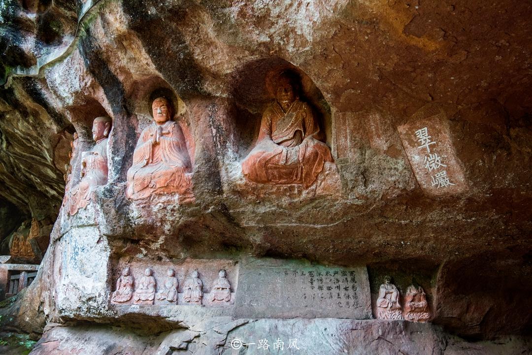 通天岩风景区内遍布石窟,这些石窟始凿于唐代,兴于宋代,是南方少有的石窟类历史遗存,有“江南第一石窟”之称,虽然有的朋友认为赣州离长江比较远,以江南之名进行夸奖有点勉强,但赣江的的确确注入长江,通天岩的艺术成就也很高。
