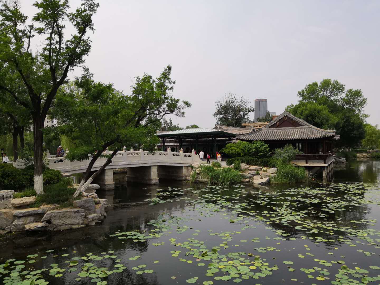 园林中湖区分布的面积很大,蜿蜒的小路连接着精美的小拱桥,绿树茵茵,垂柳轻摇,还有苏州园林一般的亭阁楼台,颇具江南园林的韵味,一步一景富有诗意,作为一个免费的公园,真的算很美了。
