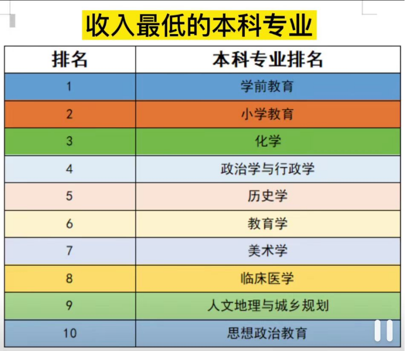 今日话题:大家来说说你觉得哪些专业收入较低呢?