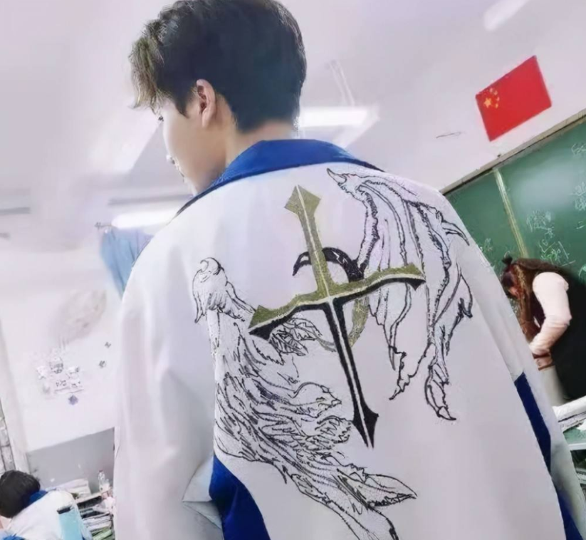 有些学生不仅仅是对校服进行绘制,还会对校服做些“手脚”,由于学校的校服都是统一的只有号码大小的差别,但是有些学生为了美观更是将校服进行改版。