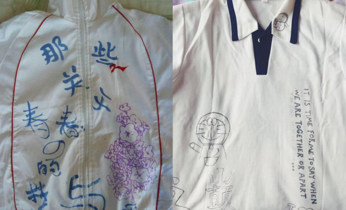 而且有些学生也在怀念自己的高中生活,于是在校服上绘制了怀念的话语,可见也是一位重情义的学生啊。