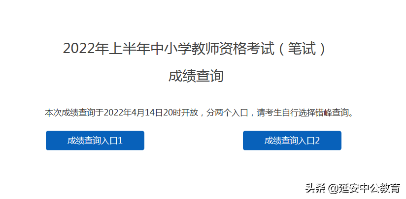 2022年上半年中小学教师资格成绩查询入口于2022年4月14日20时开放