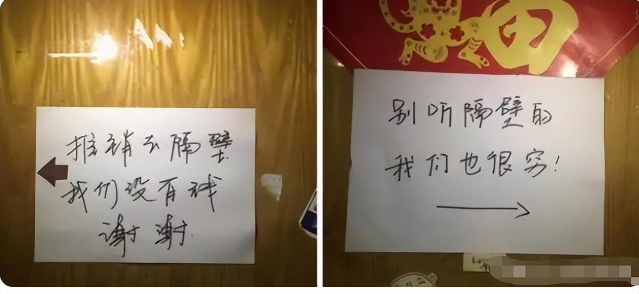 一般人看到这个标语估计连敲门的勇气都没有了,推销员更是直接被吓退。除了他们还有别的大学寝室标语也很搞笑,一个写推销去隔壁,一个写我们也很穷。