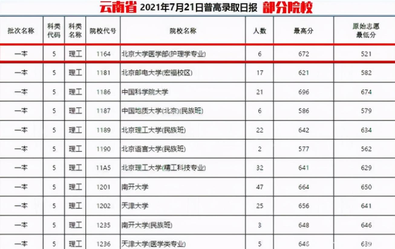 还有更令网友们“吃鲸”的,今年北京大学医学部“护理专业”在云南招生,考生521分就能被录取,也就是说521分以上的考生就能进入顶尖名校医学部学习,要知道去年像进入北大。