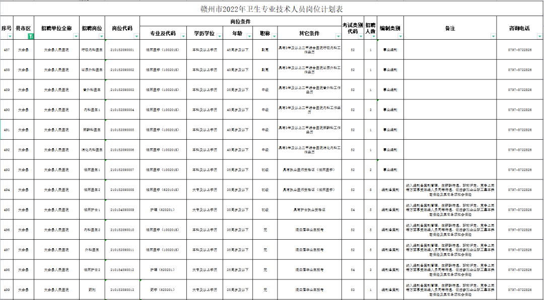 1.赣州市2022年卫生专业技术人员岗位计划表