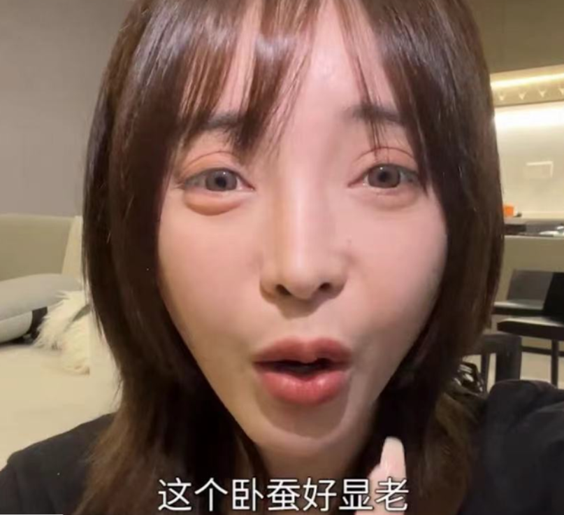 昔日饱满的苹果肌开始变形,脸内大量填充物坠着她的脸往下沉,导致她出现了法令纹,还有了吓人的大卧蚕。