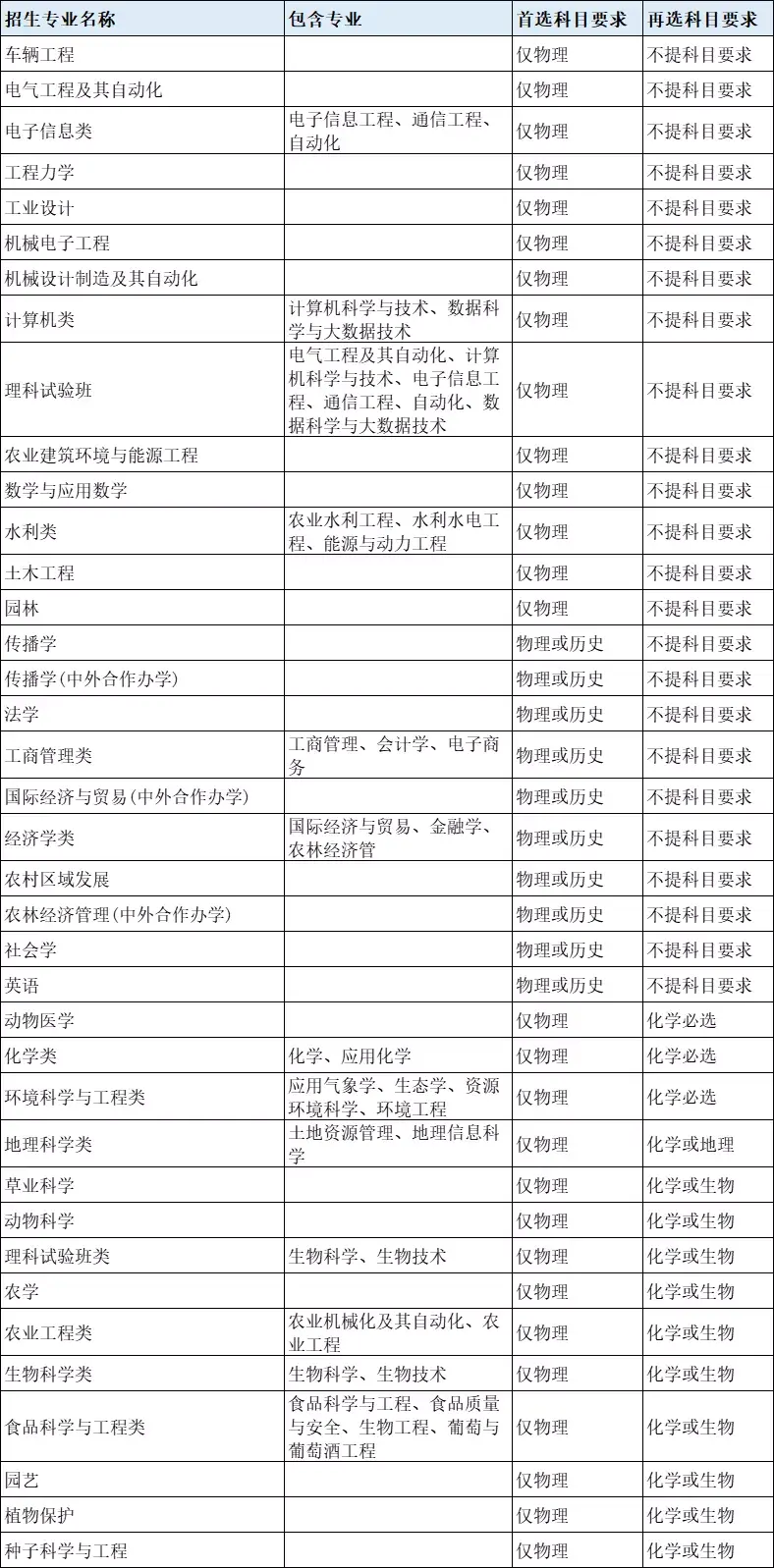 从再选科目要求看,24个专业(类)不提再选科目要求,占全部专业的63%;10个专业类要求选考化学或生物;3个专业类要求化学必选;1个专业类要求选考化学或地理。因此,如果目标学校是中国农业大学的话,再选科目建议选考化学。