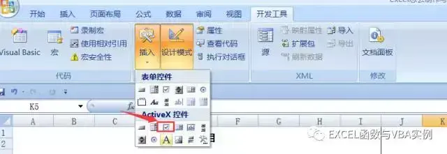 第一步:点击”开发工具“-"设计模式"-”插入“-复选框按钮: