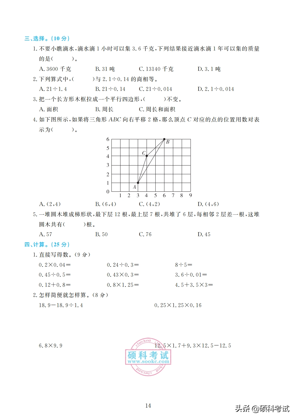 最新五年级上册数学期末知能达标检测卷四套(附答案)考查知识点全面,难度适中,五年级老师、家长考前复习,检测孩子复习情况!