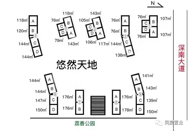 悠然天地:2005年入伙,共9栋,都是12-18层的小高层,以3、4房改善为主。只有少量76-79平的刚需2房。其中5、7栋2梯2户,其他楼栋都是2梯4户,76-176平2-4+1房都有,户型实用率较高,1栋和3栋临深南大道,会有噪音困扰。