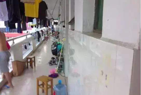 西南某一本医科大学宿舍的外观图,乍看,莫不是大型服装批发市场?没有阳台、空间狭小,只能从走廊里晾衣服的苦谁能懂?