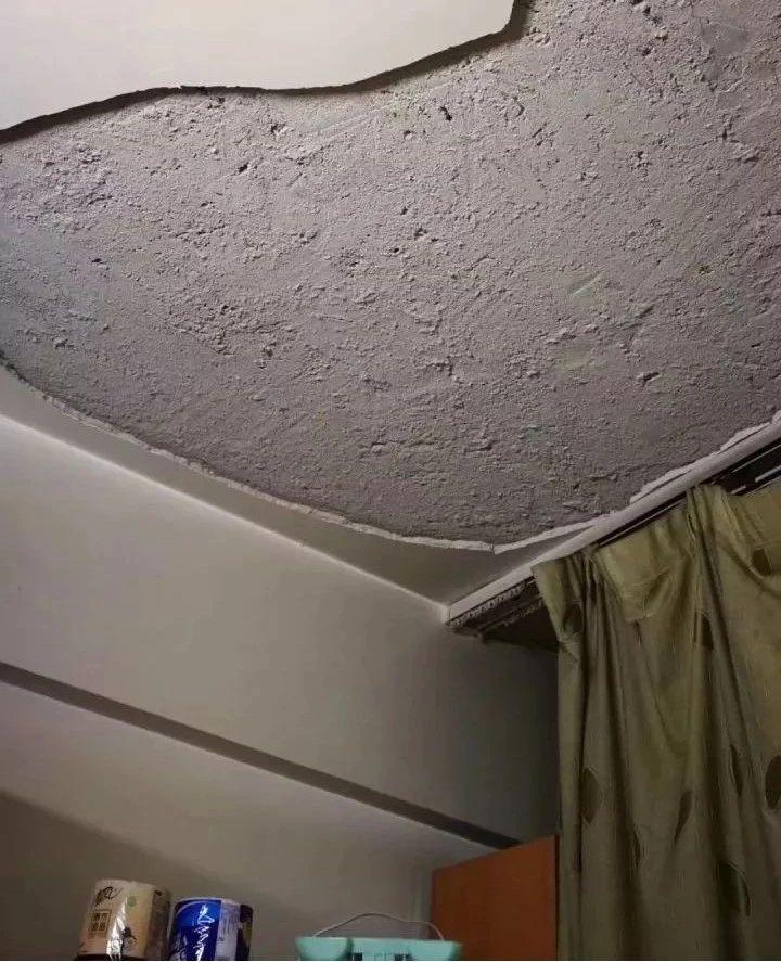 住在这里的同学,时刻体验着“命悬一线”的刺激感,可能睡着睡着,寝室的天花板就塌了!