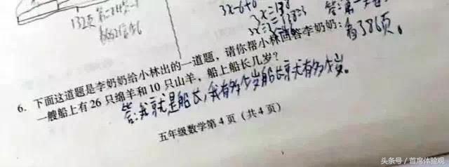 不久前,一位法国教育心理学家曾经给上海的孩子们出了一道题:一艘船上有86头牛、34只羊,问这艘船的船长的年龄有多大?结果有90%的学生的答案是86-34=52岁,10%的学生认为此题非常荒谬,无法解答。当然,这10%的学生答对了。