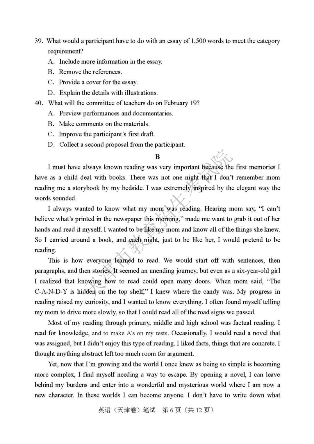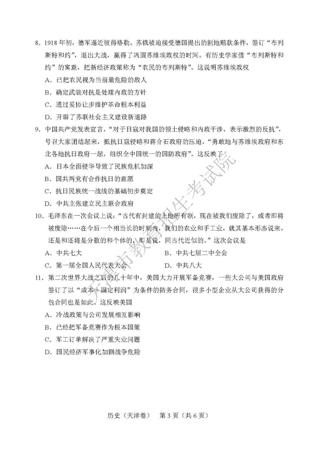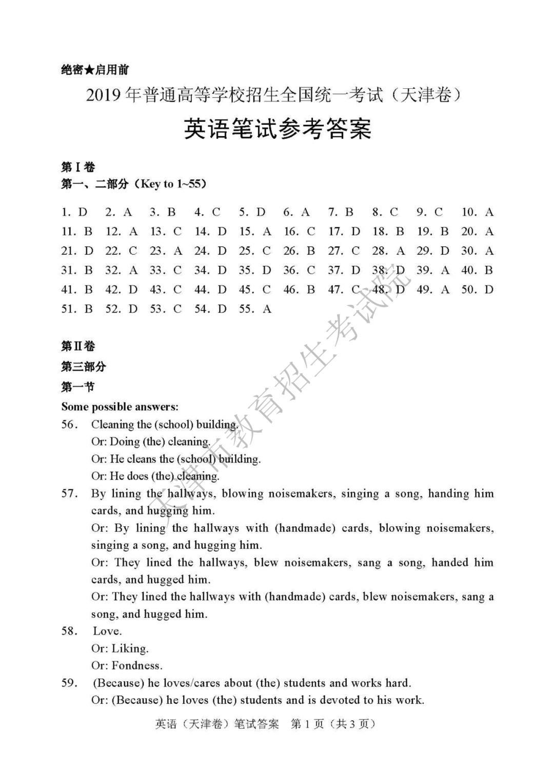 2019年天津市普通高考已于6月7日、8日顺利收官。现发布各科目试卷及参考答案,供参考使用。