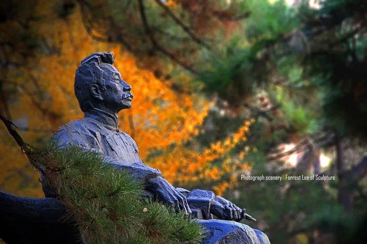 顺着鲁美大门直走正前方的就是鲁美标志性的雕塑啦,我们的鲁爷爷,关于的鲁美的照片啦,总是躲不过他的身影。他的身后是一大片的绿地。经常会有一些学生的画展啦,雕塑展啦在那里展出。