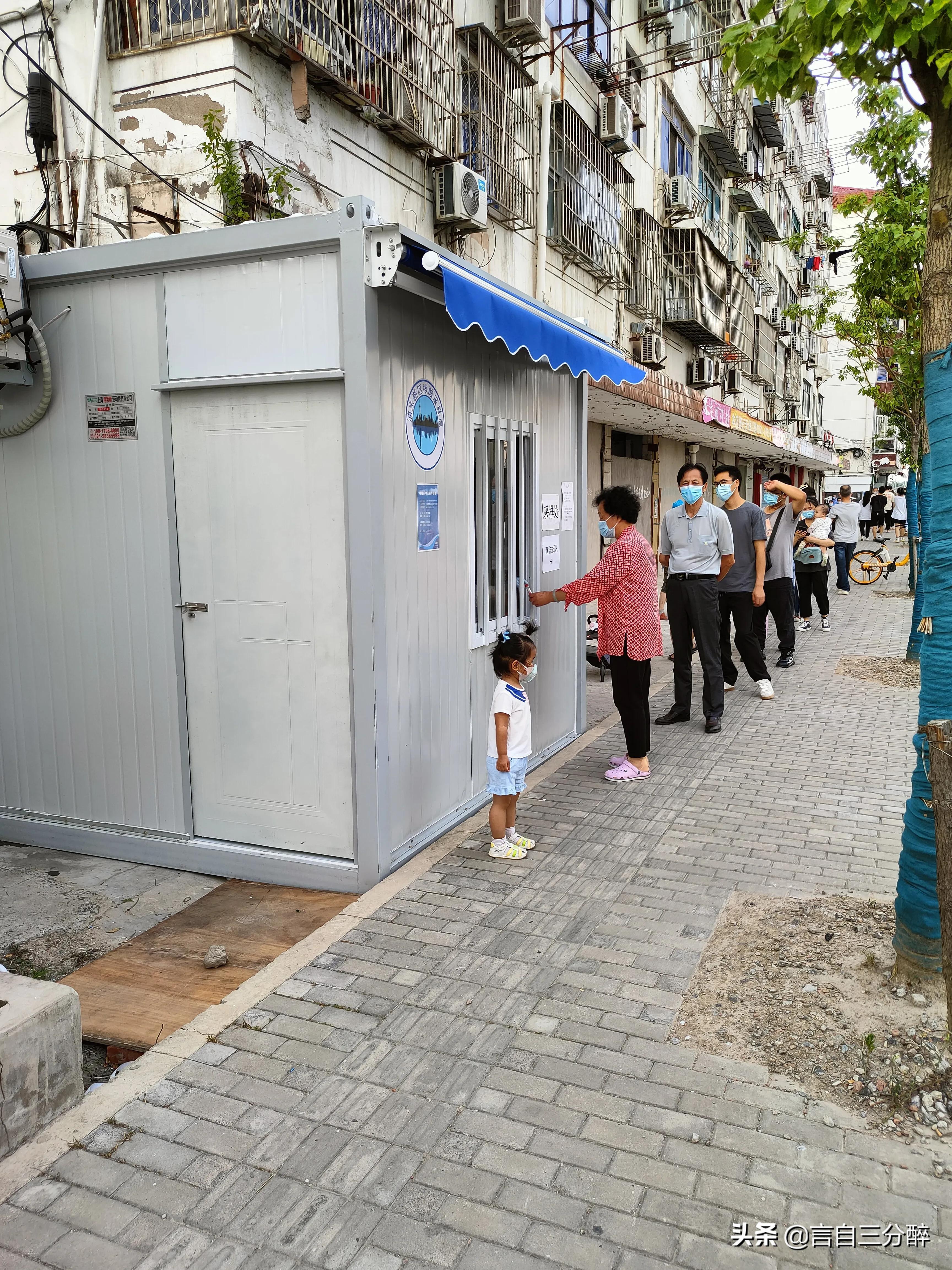 天气逐渐变黑,牵着小拖车,带着闺女往家赶,恰逢排队核酸,顺道做了一下,现在的核酸采样亭就是集装箱的缩小版,一个亭,两个窗,一个负责扫码,一个负责采样。仿佛曾经的报刊亭又回到了大街小巷。