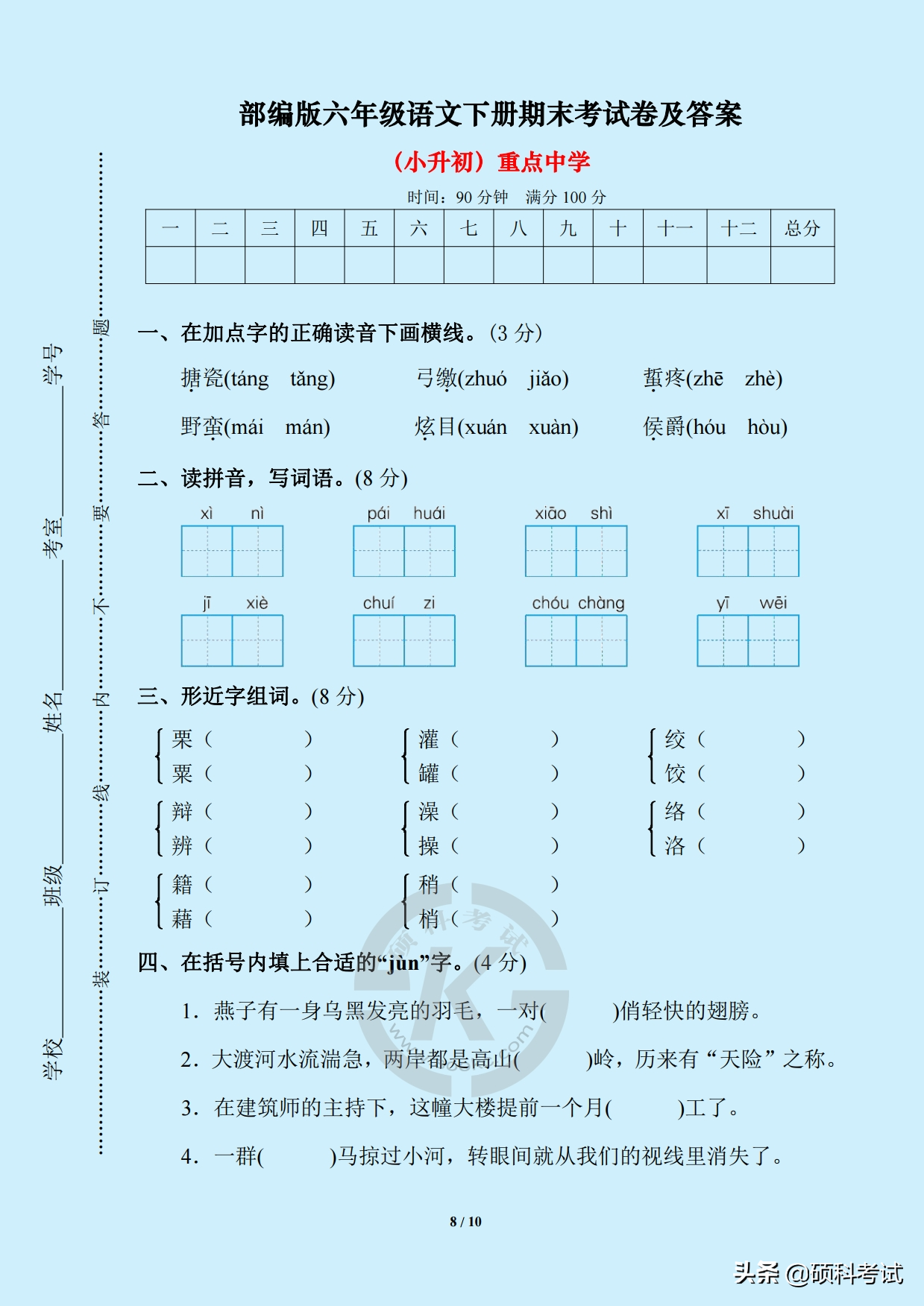 版权声明:我们致力于保护作者版权,注重分享,被刊用文章【语文期末考试试卷(部编版六年级语文下册)】因无法核实真实出处,未能及时与作者取得联系,或有版权异议的,请联系管理员,我们会立即处理! 部分文章是来自自研大数据AI进行生成,内容摘自(百度百科,百度知道,头条百科,中国民法典,刑法,牛津词典,新华词典,汉语词典,国家院校,科普平台)等数据,内容仅供学习参考,不准确地方联系删除处理!;