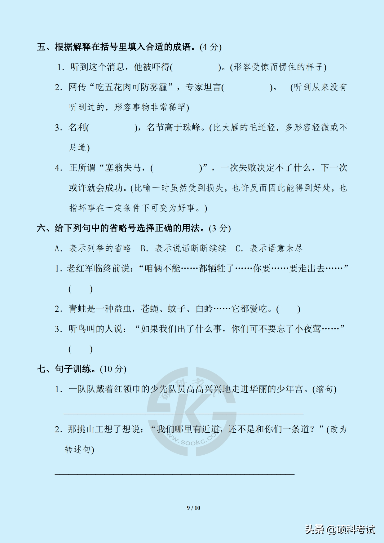 最新!部编版六年级语文下册(小升初)期末考试卷及答案,主要考查:加点字的正确读音、读拼音,写词语、形近字组词、在括号内填上合适的字、根据解释在括号里填入合适的成语、给下列句中的省略号选择正确的用法、句子训练、日积月累、根据课本内容填空、主题交流、阅读拓展、课外阅读、习作展示等知识点,适合小升初学生巩固知识,冲刺提分,建议家长给孩子练练!