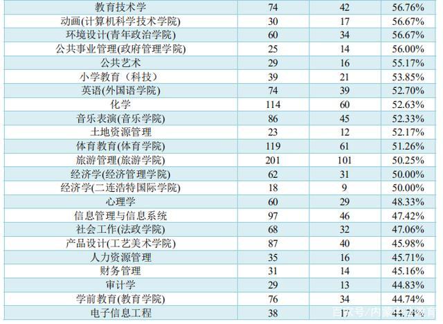 就业率在50%-60%的学院有6个,分别是科学技术史研究院、计算机科学技术学院、新闻传播学院、音乐学院、历史文化学院、文学院。