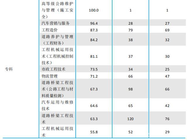 本校 2020 届硕士、本科、专科各专业毕业生中,传播学、汉语言文字学、金融学、模式识别与智能系统、物理电子学、新闻学、信息与通信工程、中国古代文学、宗教学硕士毕业生的就业率均为 100.0%;化学、食品科学与工程本科毕业生的就业率均为 100.0%;高等级公路维护与管理(施工安全)、汽车营销与服务专科毕业生的就业率均在 95.0%以上,毕业生就业情况较好。
