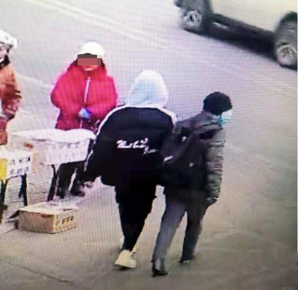 监控视频显示,戴白帽、穿白鞋的小牛和戴帽子口罩的男子离开学校