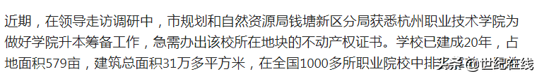该校在学校网站也发布了相关新闻称努力朝着本科层次职业教育迈进。浙江省作为东部重要的职业教育大省,杭州市作为省会城市,目前还没有一所职业本科院校。