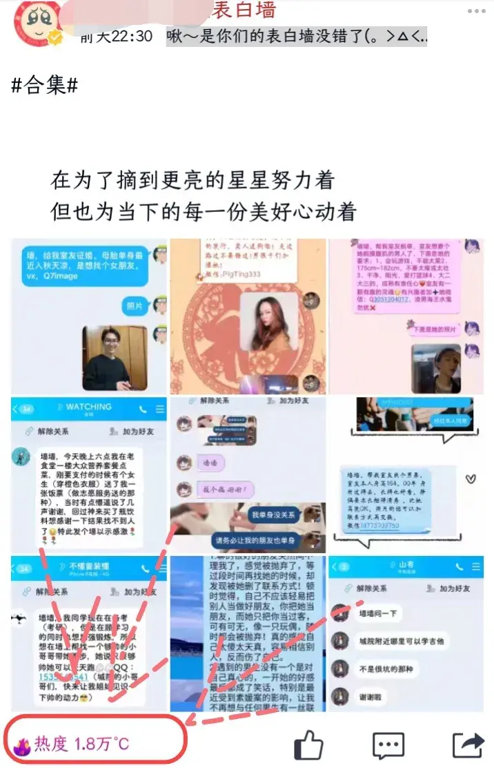 因为不常逛QQ空间,所以也看不到每次墙墙(表白墙的别称)发的匿名“寻人启事”,当我这次认认真真地看完它最近发的动态时,才知道它在我们学校有多火。