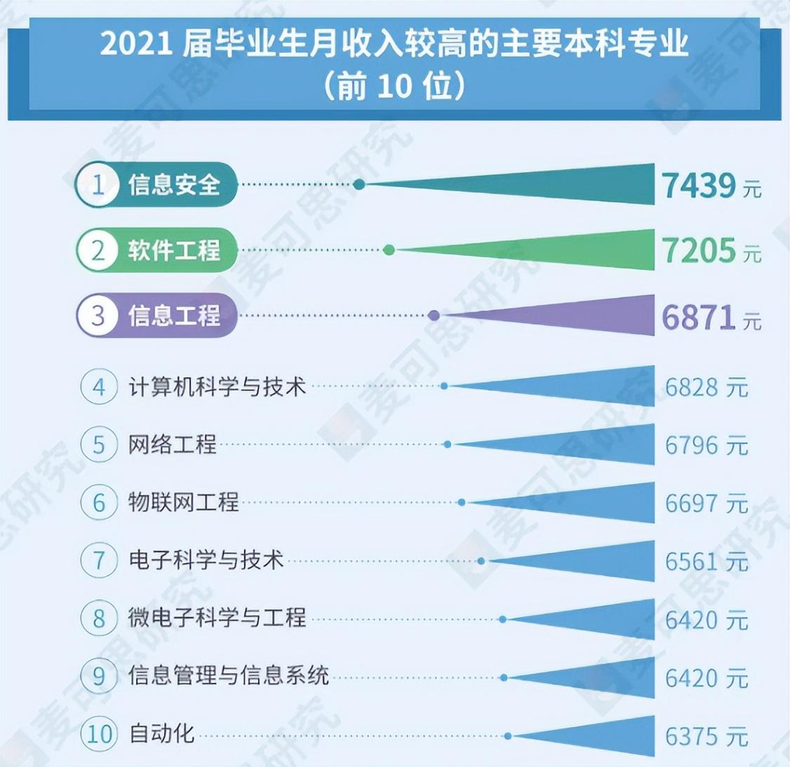 6月,《就业蓝皮书:2022年中国本科生就业报告》正式公布,信息安全、软件工程、信息工程、计算机科学与技术、网络工程、物联网工程、电子科学与技术、微电子科学与工程、信息管理与信息系统、自动化10个专业月薪位列2021届毕业生月收入较高的前10位本科专业。中国石油大学(华东)2022年本科招生专业包括软件工程、计算机科学与技术、信息管理与信息系统、自动化4个本科招生专业。