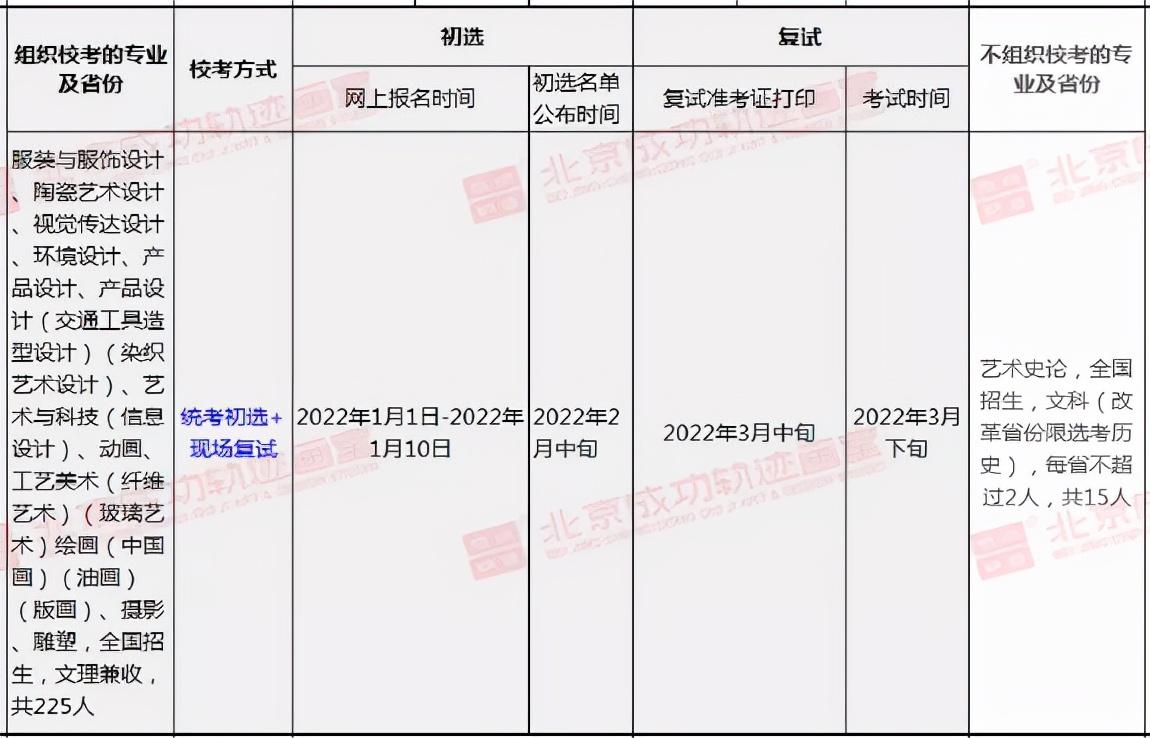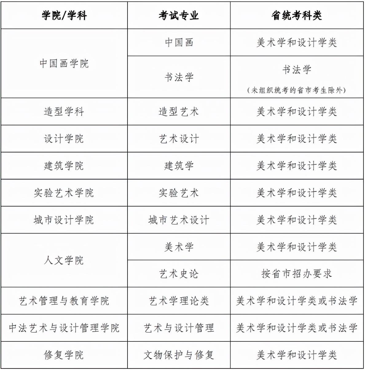 2022年组织校考的专业为美术类、设计类专业,面向全国共招生225人;不组织校考专业艺术史论专业,仅需统考成绩合格按高考文化成绩录取,面向全国招生15人,每个省份不超过2人。