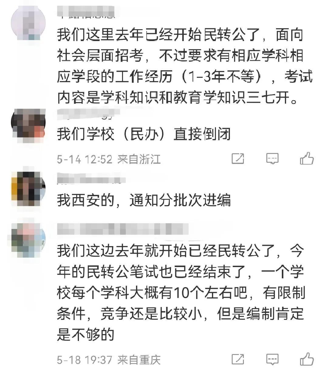 西安市已经确定将38所学校民转公,还有湖南、天津、湖北、重庆等省市的部分民办学校也纷纷转了公立学校。