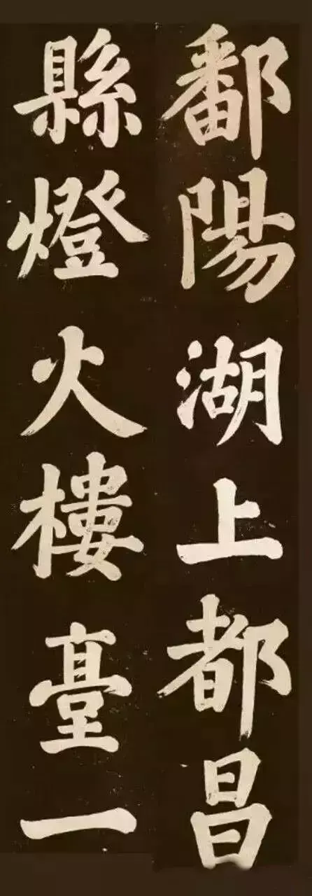 诗文:鄱阳湖上都昌县,灯火楼台一万家;水隔南山人不渡,春风吹老碧桃花。眉山苏轼书。作品用笔于圆润处见雄健。颇具颜体之风。