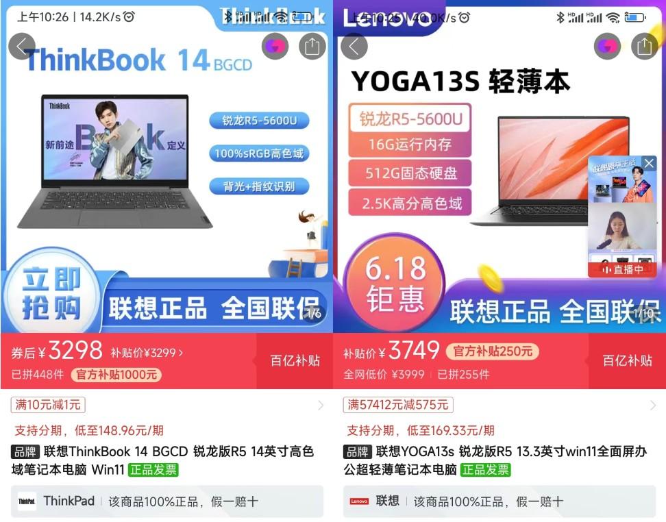 再看看今年的轻薄本市场,不禁让人感觉一切都换了个样子。根据某知名廉价电商平台价格显示,原本售价稳定在5000元上下的轻薄本在今年纷纷降价,首发价5599元的联想Yoga 13s 锐龙版,目前百亿补贴价已经来到了3749元,相比去年常规价格直降1800元。
