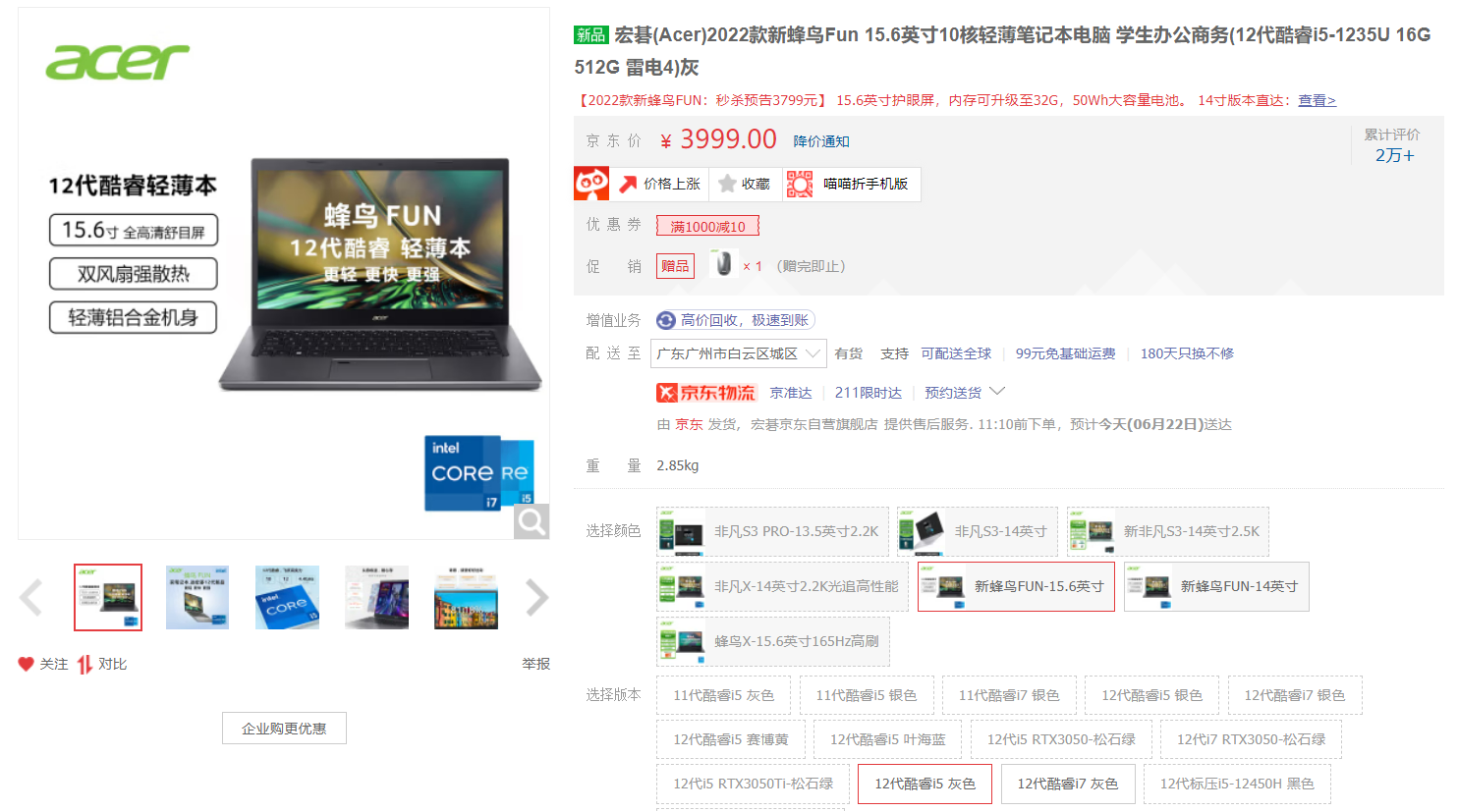 有趣的是,除了去年的库存商品外,今年发布的新品价格也纷纷探底,包括惠普星14 青春版、华硕无畏15、宏碁新蜂鸟Fun 14在内的多款新品,基本都在核心配置升级为十二代酷睿处理器的基础上,降低了产品的首发价格,在4000元出头的价位段徘徊着。