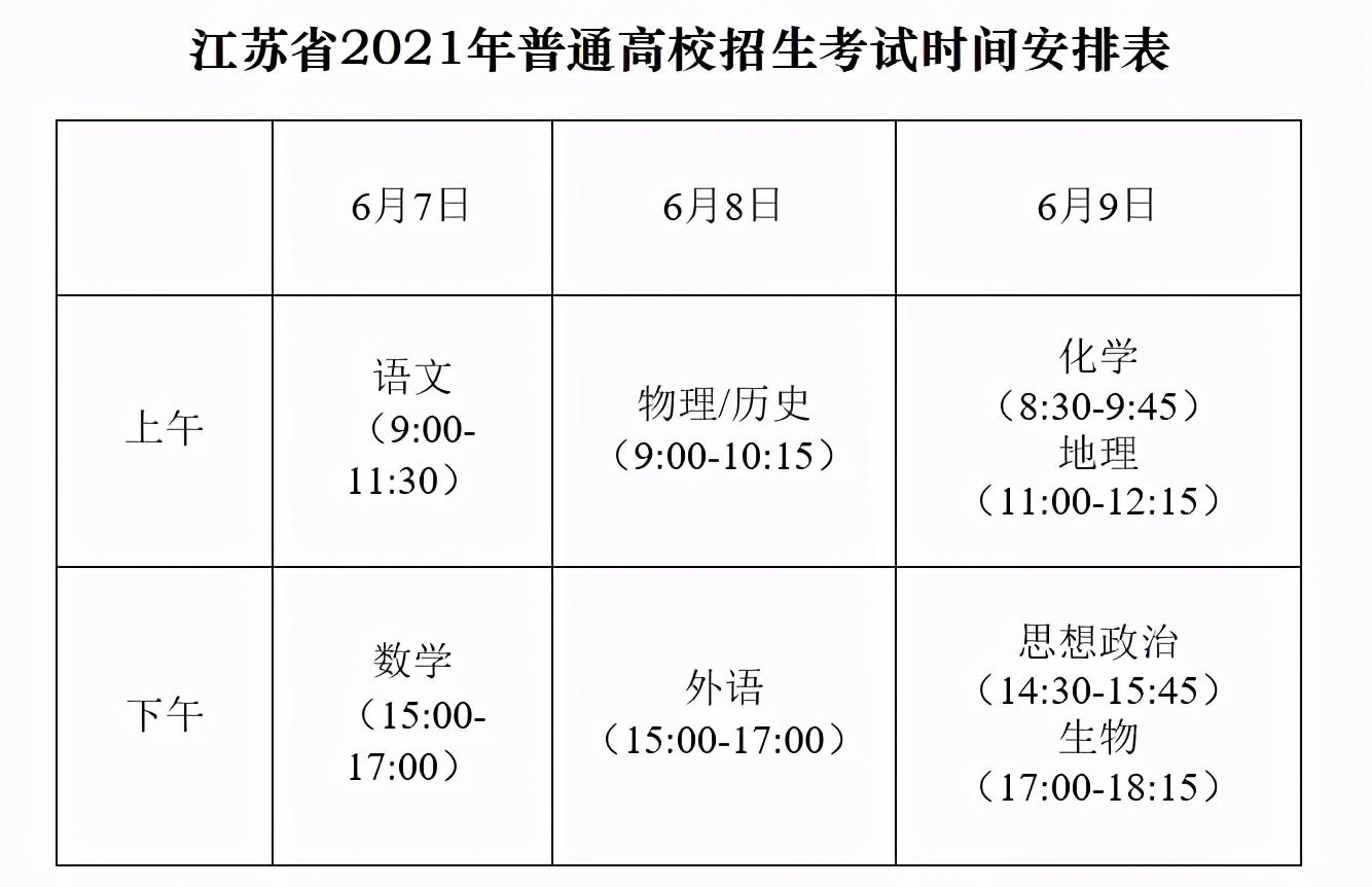 日前,《江苏省2021年普通高等学校招生工作意见》发布,今年的江苏省高考时间安排在6月7日至9日。按照前期发布的高考综合改革方案及相关配套政策的规定,今年高考在考试科目、成绩构成、录取批次、志愿设置、投档规则等方面都进行了相应调整。