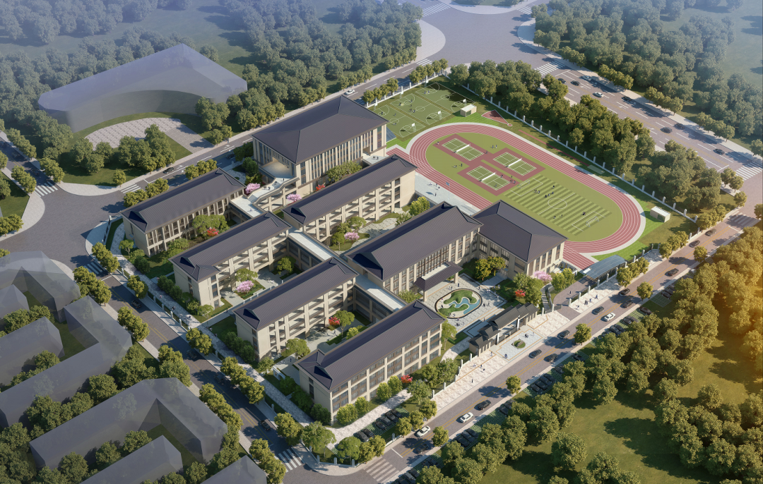 稠城第一小学教育集团高新区校区位于苏溪镇阳光大道与好派路交叉口东北侧。项目总投资3.1056亿元,总用地面积为40727.47平方米,建筑面积为61535.98平方米。办学规模36个班。