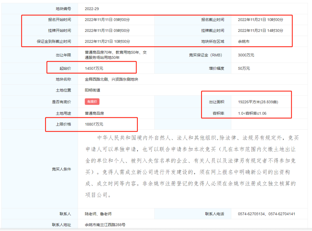 出让面积19226m²(折合28.839亩),1.0<容积率≤1.06,建筑密度≤25%,绿地率≥30%,建筑高度≤24m。拍卖起始总价14507万元,竞买保证金3000万元,土地用途为住宅、教育、社会停车场用地。