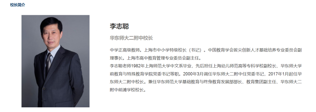 根据松江区与华二的合作协议,华东师大二附中松江分校校长由华东师大二附中校长兼任,也就是说,华二松江的首任校长就是现华二校长——李志聪校长。
