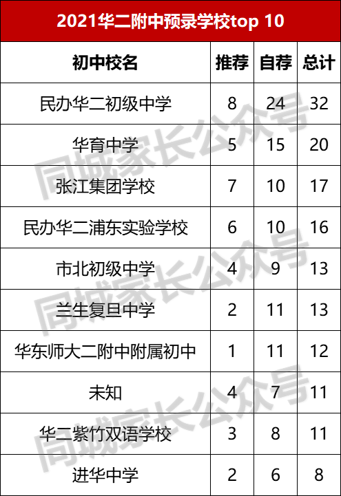 华二集团学校在预录中占很大比重,嘉华二、闵华二、浦华二,这三所学校加上“干儿子”进华中学,预录人数共68人,占预录总数的31%。当然,华育、张集、兰生等强校在其中也占有一席之地。