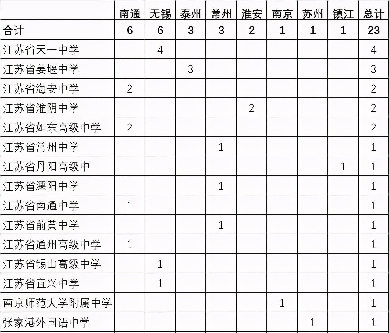 苏中:共有9人获得江苏高考状元,南通6人,泰州3人;