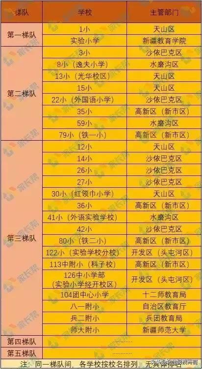 乌鲁木齐小学排名总共三个梯队,26所学校。