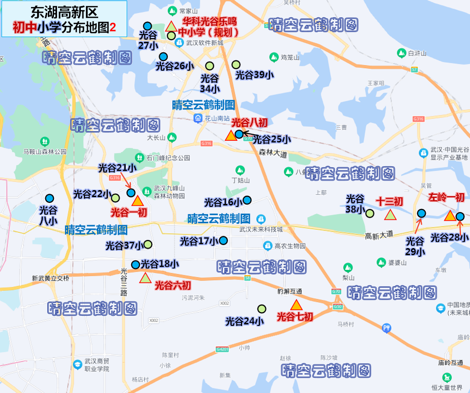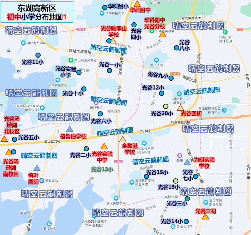 【前言】:本文是武汉学区房系列第35篇。晴空云鹤将重点谈谈东湖高新区(光谷)的各初中和小学的情况如何?各学校是如何分布的?各初中学校的梯队格局分哪几类?家长圈中的哪些初中和小学比较好?等等。