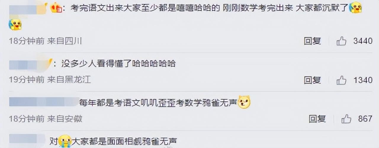 经过考生这样比喻,已经可以隐约可以猜到这次卷子的难度,不得不说今年考生实在太难了。