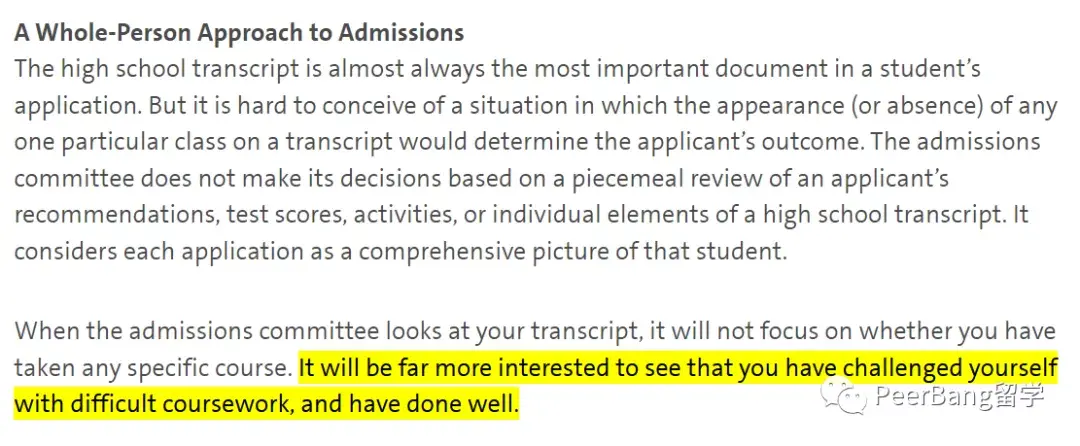 “我们没有指定所有学生都遵循的单一学术途径,但是最强的申请者往往选择了要求最严格的课程。”