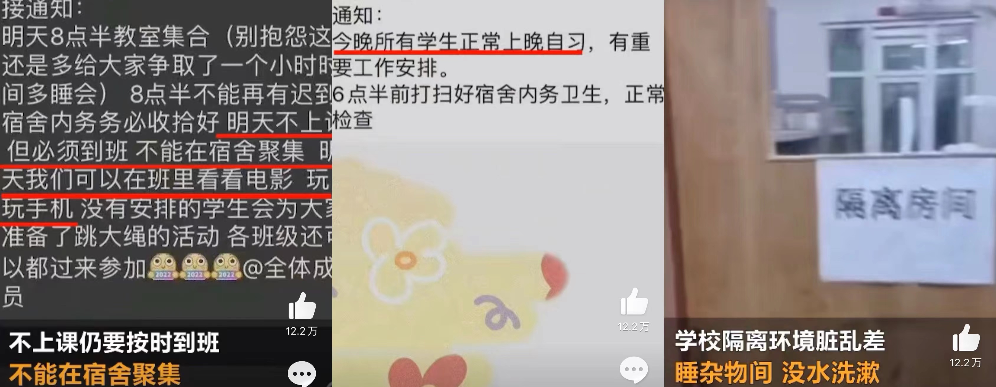 校方大概是注意到了学生们的不满,又发布了一则“通知”,要求学生不得发布不正当的言论,如果发出类似的信息,只要浏览量过千,就构成犯罪。这一迷惑的操作直接就吸引了全网的注意力。