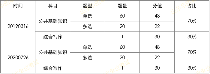 根据往年的题型来看,山东事业单位统考题型分布如下