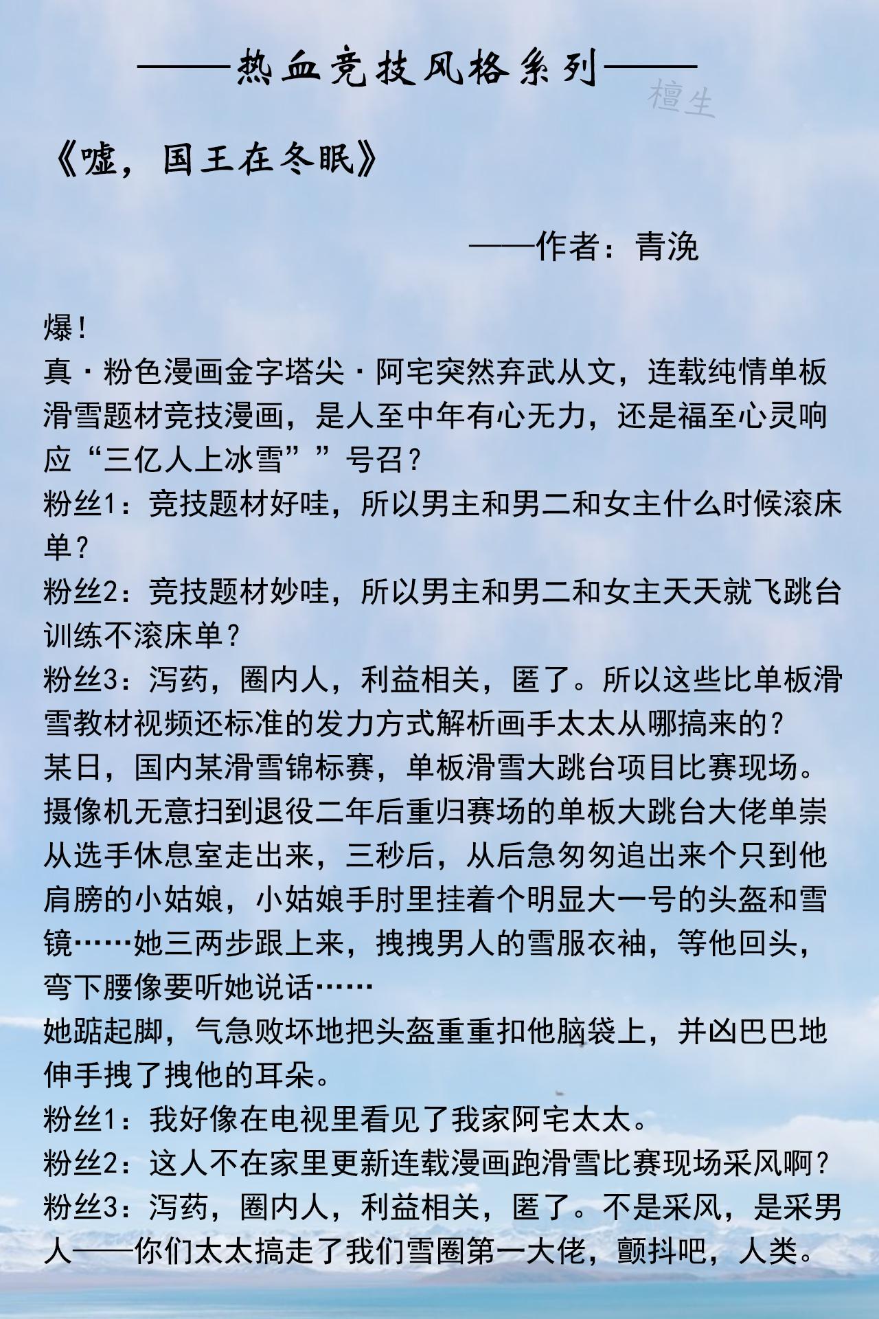 这篇文男女主人设讨喜,女主活泼可爱,人菜又爱玩,软萌像团子;男主爱怼女主,但是女主有小情绪了他还得乖乖哄,梗是通俗的女追男,但作者的文笔很好,将两人的相处互动写得清新自然,剧情丝滑让人一气呵成读完。结局男主重拾梦想荣获冠军,又让人觉得热血又感动。