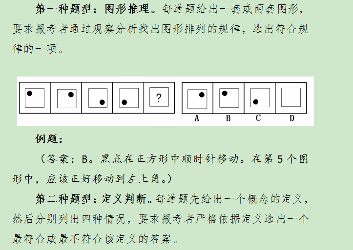 图形推理考察什么?要想知道这个问题,恐怕还得往上寻找。图形推理作为判断推理的一种题型,与其说图形推理考察什么,不如直接问判断推理考察什么!下面就一起来看下考试大纲中是怎么说的。