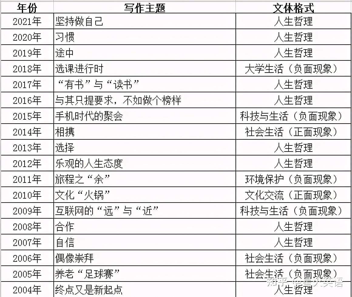 为了帮助考生对历年真题的主题、题材、来源有一定的了解,我们对近6年真题统计如下: